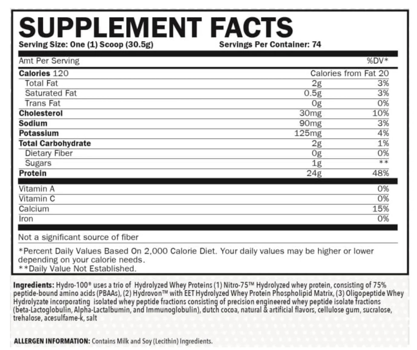 Hydro 100 is a 100% Hydrolyzed Whey Protein. Unless you are in the medical profession, you have probably never seen protein like this before. Hydro 100 is unique due to its complex of three different Whey Hydrolyzates.